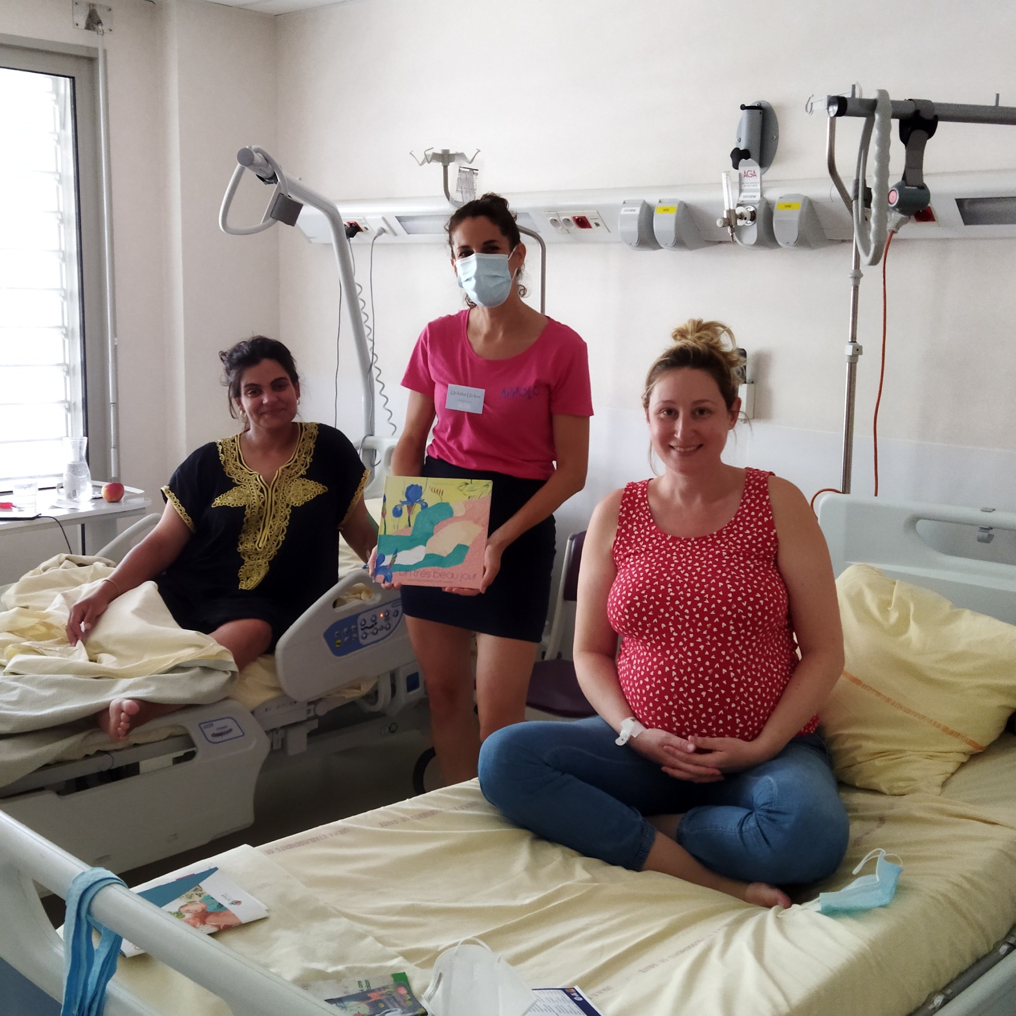 Les familles sont prévenues de notre venue. Nous offrons un livre au nouveau-né puis nous partageons un moment de lecture avec la famille. Nous passons également dans les chambres des femmes enceintes qui sont hospitalisées pendant leur grossesse.